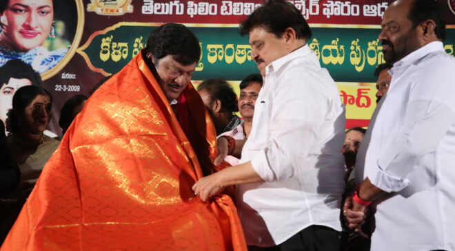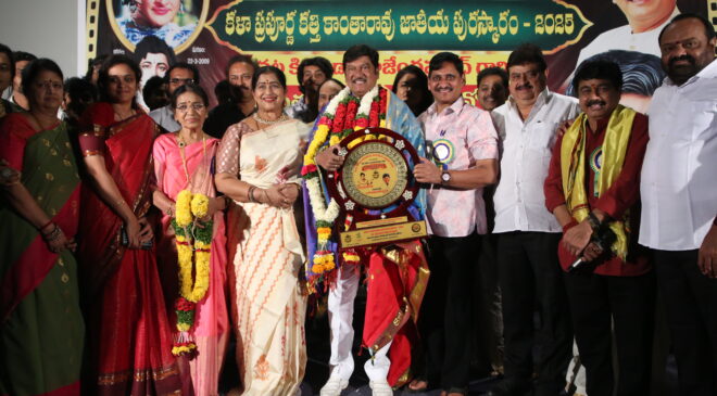 Dr. Rajendra Prasad :Accepting the award, Rajendra Prasad said he has 48 years of acting experience and had the fortune of working with five generations of heroes. He described the day as unforgettable. He remembered that legendary actors N.T. Rama Rao and Akkineni Nageswara Rao were like the two eyes of the industry, while Kantha Rao was like the tilak between them. He praised Kantha Rao’s memorable performance as Lakshmana in “Lava Kusha” and said that when people think of Narada, they immediately remember Kantha Rao.Rajendra Prasad said he feels fortunate to receive an award in the name of such a legendary actor. He thanked all the distinguished guests who attended the event and expressed gratitude for the opportunities he received throughout his career.He concluded by saying that if audiences around the world have been able to forget their troubles and laugh while watching his films for the past four decades, that itself is the greatest achievement of his life as an actor.