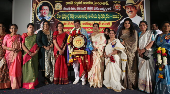 On Monday evening in Hyderabad, the Katti Kantha Rao Memorial National Award was presented to veteran actor Dr. Rajendra Prasad, popularly known as Nata Kireeti. The award ceremony was organized jointly by the Bharata Cultural Academy and the Telugu Film Television Welfare Forum. As part of the event, International Women’s Day was also celebrated, and several women from different fields were honored.The program was attended by many distinguished personalities including BJP State President Ramachander Rao,Ex.Central Minister Venu Gopala Chary, Telangana State Election Officer P.Pardha Saradhi IAS, noted film director S.V. Krishna Reddy, senior actress Kavitha, Telangana FDC MD and I&PR Commissioner Ms. Priyanka IAS, TTWA President Prem Raj, Vision VVK founder Vijay Kumar, TV Federaration Founder Nagabala D. Suresh Kumar, lyricist Venigalla Rambabu, Chittaranjan, Srinivasa Raju, Akkineni Sridhar, writer Mamidi Harikrishna, film journalist Prabhu, and several others. During the event, women including actress Jyothi, senior actress Dubbing Janaki, Sushila (daughter of Kantha Rao), and many others from various fields were felicitated and presented with mementos.