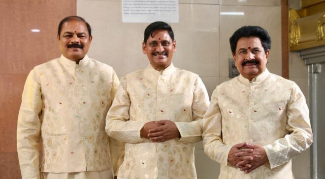 కొత్తగా చిత్ర నిర్మాణ రంగంలోకి ప్రవేశించే ప్రతి సంస్థ తమ బ్యానర్ రూపకల్పనలో ప్రత్యేక  శ్రద్ధను  కనపరుస్తుంది. తమ బ్యానర్ కు సంబంధించిన లోగోను, టైటిల్ ను చాలా ఆర్టిస్ట్ గా రూపొందించుకునేందుకు ప్రయత్నిస్తారు సదరు నిర్మాణ సంస్థ అధినేతలు . అలాగే బ్యానర్ అనౌన్స్మెంట్ కు  ముందు సెంటిమెంటల్ గా దైవ దర్శనం చేసుకుని లోగో ప్రతులను దేవుడి ముందు ఉంచి  భక్తిశ్రద్ధలతో పూజా కార్యక్రమాలు కూడా నిర్వహిస్తారు . కాగా  ప్రస్తుత విషయానికి వస్తే ప్రముఖ దర్శకులు ఎస్వీ కృష్ణారెడ్డి దర్శకత్వంలో కె . అచ్చిరెడ్డి సమర్పణలో నూతన నిర్మాత కొమ్మూరి ప్రతాపరెడ్డి నిర్మిస్తున్న ‘వేదవ్యాస్’ చిత్రం బ్యానర్ ఆవిష్కరణ ఫిలింనగర్ లోని సాయిబాబా దేవాలయంలో శాస్త్రోక్తంగా జరిగింది. మాజీ శాసనసభ్యులు,   కె . పి. ఆర్. ఐటీ విద్యాసంస్థల అధినేత, బిజినెస్ మ్యాన్  అయిన కొమ్మూరి  ప్రతాపరెడ్డి తమ బ్యానర్ కు ‘సాయి ప్రగతి ఫిలిమ్స్’ అని నామకరణం చేసుకొని చిత్ర   దర్శకులు ఎస్వీ కృష్ణారెడ్డి, సమర్పకులు అచ్చిరెడ్డి లతో కలిసి  సంప్రదాయబద్ధంగా పంచ కట్టులో దేవాలయానికి విచ్చేసి పూజా కార్యక్రమాలు నిర్వహించి బ్యానర్ ను ఆవిష్కరించారు. తమ ఇష్టదైవమైన సాయిబాబా సమక్షంలో ఈ ముగ్గురు ప్రముఖులు పంచకట్టులో కనిపిస్తున్న ఫోటోలు వారి ఫేస్ బుక్, వాట్సప్ గ్రూపులలో వైరల్ అవుతున్నాయి. కాగా హైందవ ధర్మ విశిష్టతను  ఆవిష్కరిస్తూ సైంటిఫిక్ అప్రోచ్ కలిగిన సకుటుంబ సమేత కథాంశంతో ఎస్వీ కృష్ణారెడ్డి దర్శకత్వంలో రూపొందుతున్న వేదవ్యాస్ చిత్ర నిర్మాణ కార్యక్రమాలు చివరి దశకు చేరుకున్నాయి. పిడుగు విశ్వనాథ్  హీరోగా పరిచయం అవుతున్న ఈ ” వేద వ్యాస్” చిత్రం ద్వారా కొరియన్  నటి జూన్ హ్యూంజీ,  మంగోలియన్ నటుడు షరన్ బోల్డ్ సెగ్మెంట్ ను తెలుగు తెరకు పరిచయం చేయటం విశేషం. ఇంకా ఈ చిత్రంలో సాయికుమార్, సుమన్, బాబు మోహన్, శివాజీ రాజా,  అలీ, ఉత్తేజ్ , రఘు బాబు అజయ్ ఘోష్ , ఐమాక్స్ వెంకట్, విద్యులేఖ, రాజేశ్వరి నాయర్  వంటి ప్రముఖ తారాగణం ముఖ్యపాత్రలు  పోషిస్తున్నారు.    ఎస్. వి. కృష్ణారెడ్డి  కథ, స్క్రీన్ ప్లే.  డైలాగ్స్, సంగీతం, దర్శకత్వం   అనే ఐదు ప్రధాన శాఖలను నిర్వహిస్తున్న ఈ చిత్రానికి పాటలు: భువనచంద్ర , వెనిగళ్ళ రాంబాబు, కెమెరా : శరత్, కొరియోగ్రఫీ: సుచిత్ర , ఎడిటింగ్:  చోటా కె ప్రసాద్ , ప్రొడక్షన్ డిజైనింగ్ : బ్రహ్మ కడలి,  ఎగ్జిక్యూటివ్ ప్రొడ్యూసర్:ఫణి  శ్రీనివాస రెడ్డి మేడపాటి . త్వరలో పోస్ట్ ప్రొడక్షన్ కార్యక్రమాలు పూర్తిచేసుకుని విడుదలకు సిద్ధమవుతున్న ఈ చిత్రానికి సమర్పణ  కె అచ్చిరెడ్డి, నిర్మాత కొమ్మూరి  ప్రతాపరెడ్డి.