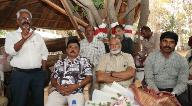 ఈ కార్యక్రమానికి కారణం అయిన శ్రీనివాసరావు మాట్లాడుతూ మిత్రులు,పుత్రులు సినీ పాత్రికేయులు.నాకు బంధువులు ఆత్మ బంధువులు సినిమా పాత్రికేయులు.నాకు సినిమాలు అంటే గొప్ప అభిమానం . సినిమా పాత్రికేయులు శిల్పి వంటివారు.రాతిని శిల్పంలా చెక్కుతారు. ఆ శిల్పాన్ని చూసి అందరూ మొక్కుతారు. అలానే సాధారణ వ్యక్తిలుగా సినిమా పరిశ్రమకు వచ్చే హీరోలను, దర్శకులను,నిర్మాతలను ప్రజల గుండెలలో స్థిరమైన స్థానం కల్పించేవి మీ రాతలే! అందువల్లే మీరు అంటే నాకు ప్రత్యేక అభిమానం. ఒక సైంటిస్ట్ , ఒక డాక్టర్ వృత్తిలో ఉన్నవారు సమాజానికి ఎలా ఉపయోగపడతారో అలానే సినిమా పాత్రికేయులు వలన కూడా సమాజానికి ఎంతో ఉపయోగం .సినిమా మీద ప్రేమతో 80 వ దశకంలో మేము తీసిన మొదటి సినిమా లైలా ఆ సినిమా నిర్మాణం కోసం తెనాలి నుండి చెన్నై వెళ్లినప్పుడు నన్ను మొదట రిసీవ్ చేసుకుంది కొండపనేని ఉమామహేశ్వరరావు, మిక్కిలినేని జగదీష్ బాబు ఆ రోజు నుండి వాళ్ళే నాకు ఆత్మీయులు బంధువులు. ఆ రోజుల్లో ఓ టాప్ హీరో సినిమా ఆడియో రైట్స్ లియో ఆనంద్ లక్ష రూపాయలు కు కొనుగోలు చేశారు . నా సినిమా లైలా కు ఆత్రేయగారు నారాయణ రెడ్డి గారు పాటలు రాశారు. MS విశ్వనాథ్ మ్యూజిక్. లియో ఆనంద్ మా సినిమా పాటలు విని 99 వేలు ఆడియో రైట్స్ కు ఆఫర్ చేశారు .ఉమా , జగదీష్ బాబు ఇద్దరు లియో ఆనంద్ ను మా ఆఫీస్ కు పిలిపించి మీరు టాప్ హీరో సినిమా కు లక్ష రూపాయలు ఇచ్చారు .అంతకంటే ఈ సినిమా పాటలు బాగున్నాయి కాబట్టి లక్ష వెయ్యి రూపాయలు ఇవ్వండి అని ఇప్పించారు. నాగేశ్వరరావు గారి తో శోభన్ బాబు తో సినిమాలు తీశాను. ప్రతి సినిమా నిర్మాణం లోను స్వంత అన్నదమ్ములు లా సినిమా పాత్రికేయులు మా మీద అభిమానం చూపించారు. ఏ రోజు నేను వారిని ఇలా రాయండి అని అడగ లేదు.వారి స్వంత సినిమా లా భావించి నేను తీసిన ప్రతి సినిమా ను వారే ప్రచారం చేశారు.. మీరంతా నా స్వంత బిడ్డల లా భావిస్తాను.నేను ఊరుకు దూరంగా ఈ స్థలం కొన్నప్పుడు ఇందులో నా కుటుంబానికి చెందిన పాత్రికేయ మిత్రులకు కూడా భాగం ఇవ్వాలి అనుకున్నా కానీ అనాడు ఈ స్థలం ఊరికి దూరంగా ఉండటంతో మార్కెట్ ధర ప్రకారం డబ్బులు ఇవ్వమని అడిగారు.ఇచ్చాను. మీకు ఇల్లు కట్టి ఇవ్వలేక పోయాను అయ్యో వీళ్ళు ఉపయోగించుకోలేదు…. ఉపయోగించుకోలేదు అని నా మనసులో ఎక్కడో చిన్న గిల్టీ ఫీలింగ్ ఉంది. అలా 20 సంవత్సరాలు గడిచిపోయాయి. నేను రకరకాల పని వత్తిడిలో పడిపోయాను. ప్రతిరోజూ రీటా ప్రసాద్ ఉదయాన్నే కనిపించగానే మనవారి క్షేమసమాచారాలు అడిగి తెలుసుకునే వాన్ని.ఒక రోజు మీ అందరితో కలిసి భోజనం చెయ్యాలని ఉంది అందరూ వస్తారా? అని అడిగితే వస్తారు అని మిమ్మలను పిలిచాడు ఆ సమావేశానికి అన్నయ్య కూడా వచ్చారు.నేను ఇచ్చింది ఏమి లేదు. మీరు నామీద చూపించే అభిమానం తో దేవ